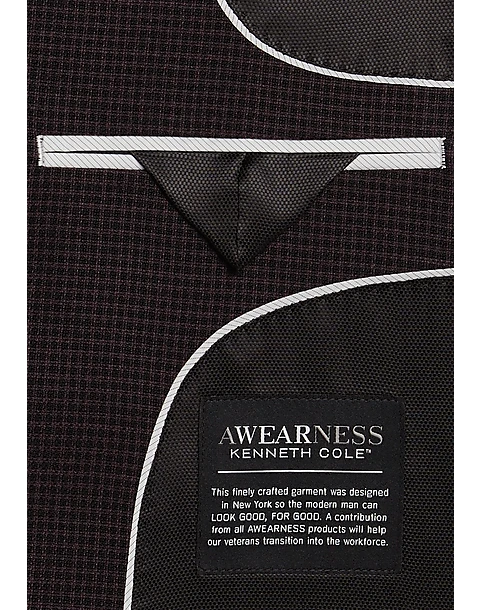 - 60% wool 38% polyester 2% spandex|Two button|Notch lapel|Side vents|Modern Fit|Awearness Kenneth Cole|