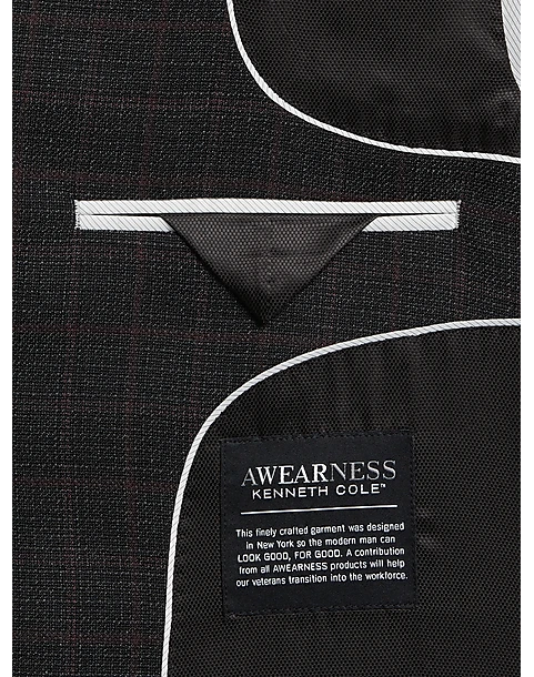 - 60% wool 38% polyester 2% spandex|Two button|Notch lapel|Side vents|Modern Fit|Awearness Kenneth Cole|