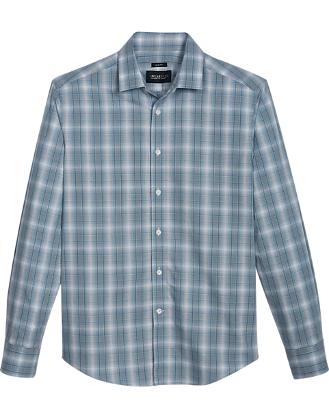 Awearness Kenneth Cole Slim Fit Spread Collar Sport Shirt, Teal Ombre Plaid