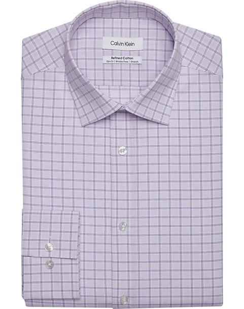 Calvin Klein Refined Cotton Stretch Supima Slim Fit Dress Shirt, Lilac Plaid