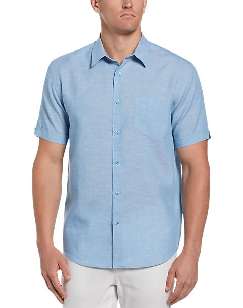 - 57% linen 43% polyester|Point collar|Button-up front|Modern Fit|Cubavera|