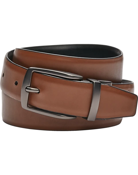 Detailed with feathered edging, this reversible belt from Egara doubles your options.
