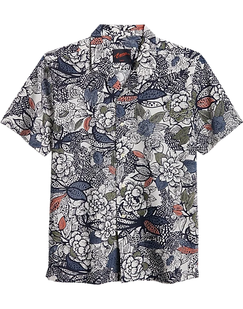 Crafted in batik fashion into a tropical floral design, this short-sleeved sport shirt by Egara offers a vacation-ready vibe. Woven from a cool cotton blend into trim, Slim Fit, it is both dress casual and on-trend.