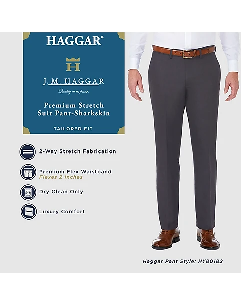 Pairing a Slim Fit with supreme stretch, these Haggar Premium Comfort suit separates pants let you relax while you do your best work or attend that special occasion. The expandable, comfort waistband is coupled with shirt gripper technology to keep you looking sharp, while the wrinkle-free fabric is machine washable for effortless wear and care. With suit separates, you select coat, pant, and vest sizes separately for an ideal fit.