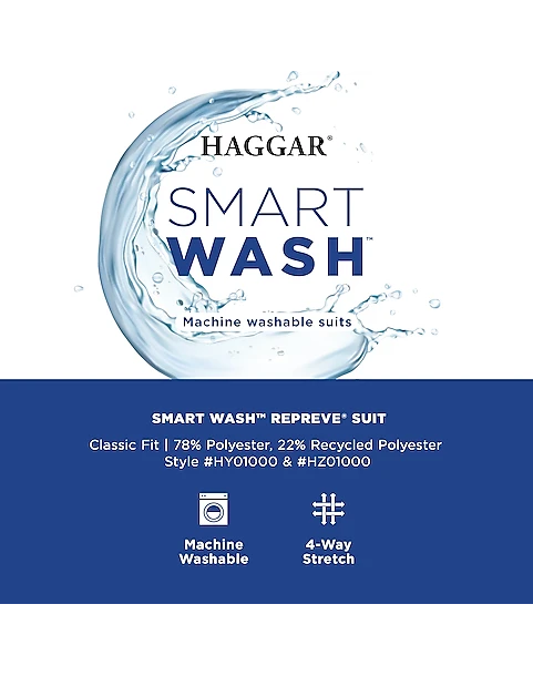 Made with innovative Smart Wash™ fabrics designed for home washing and drying machines, this Haggar suit separates coat and pants are convenient, versatile, and stylish. Woven into a Classic Fit with ample stretch, it will bring new life to your dress casual attire. Suit separates allow you to choose coat, pant, and vest sizes separately so you can attain an ideal fit, feel, and look.