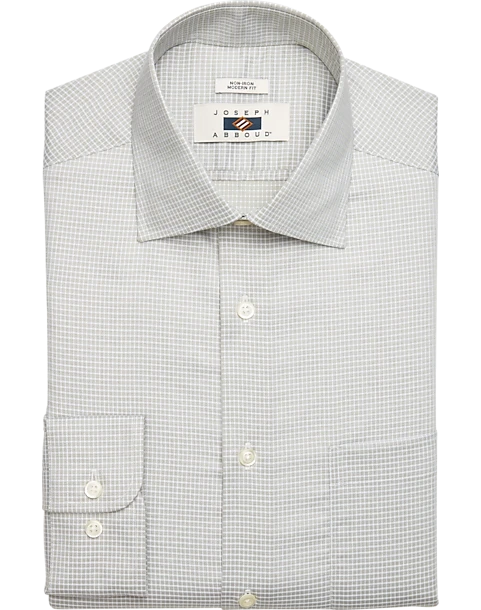 Give your dress shirt rotation a new point of view with this one from Joseph Abboud. Tailored from crisp cotton with a non-iron finish, it features a tonal grid pattern in a springtime hue. Modern Fit is close-fitting without being constricting through the chest, body, and sleeve. Recommended for more rectangular body types (shoulders aligned with hips, with the waist slightly smaller).