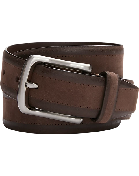 Fine perforation over a tonal panel design defines this Italian-made leather belt from Joseph Abboud.