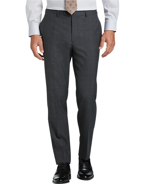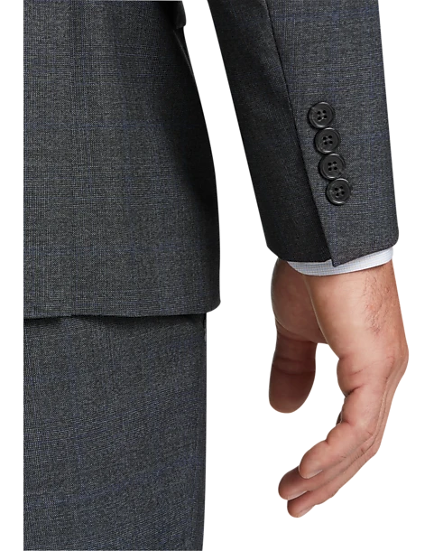 Look your best in comfort with this fine Lauren By Ralph Lauren Suit featuring a dark gray plaid pattern and fabric woven with a touch of stretch.