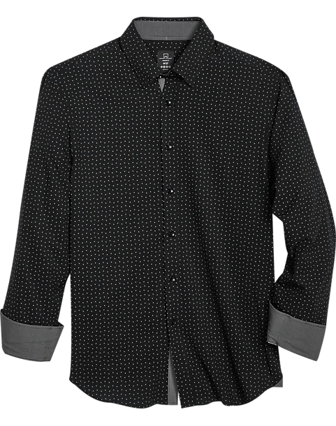 Michael Strahan Modern Fit 4-Way Stretch Sport Shirt Black Mini Triangle