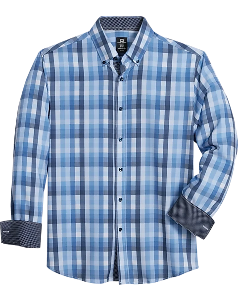 Michael Strahan Modern Fit Button-Down Collar 4-Way Stretch Sport Shirt, Blue Check