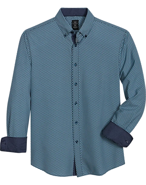 Michael Strahan Modern Fit Button-Down Collar 4-Way Stretch Sport Shirt, Green Triangles