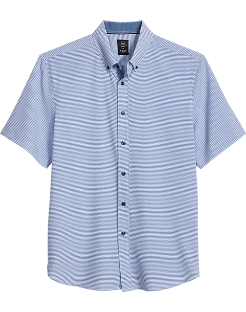 Michael Strahan Modern Fit Four-Way Stretch Short Sleeve Sport Shirt, Blue Geometric
