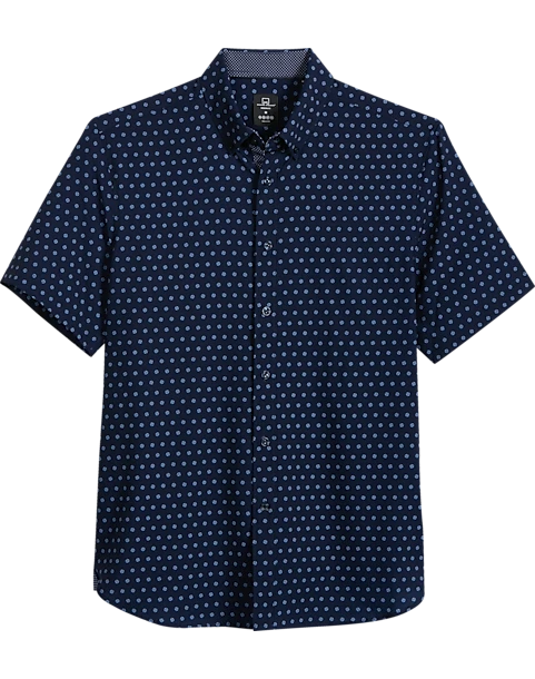Michael Strahan Modern Fit Four-Way Stretch Short Sleeve Sport Shirt, Navy Pinwheel