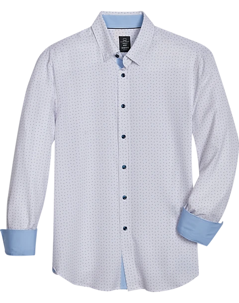 Michael Strahan Modern Fit Four-Way Stretch Sport Shirt, White Mini Triangle