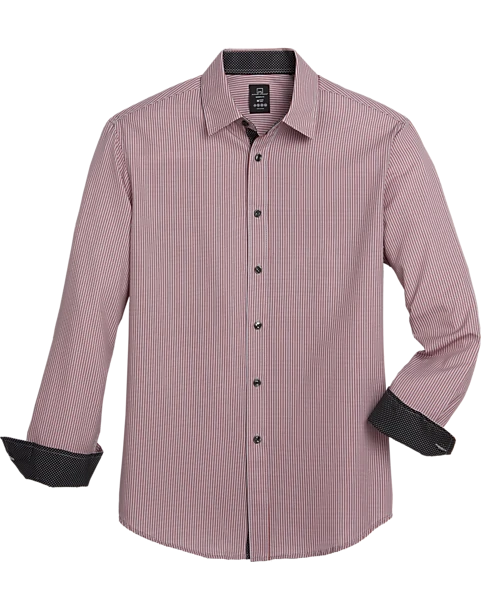 Bold and sporty in a red stripe pattern, this standout sport shirt from Michael Strahan features a trim, Modern Fit, contrast lining in the cuffs, and a comfortable performance fabric with 4-way stretch.