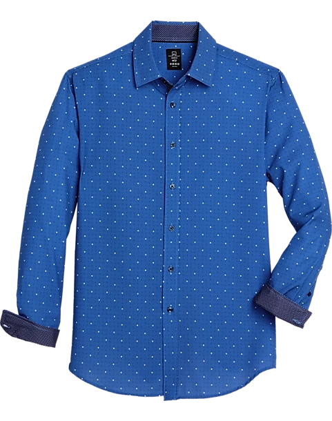 Michael Strahan Slim Fit Sport Shirt, Navy Swirl Dot