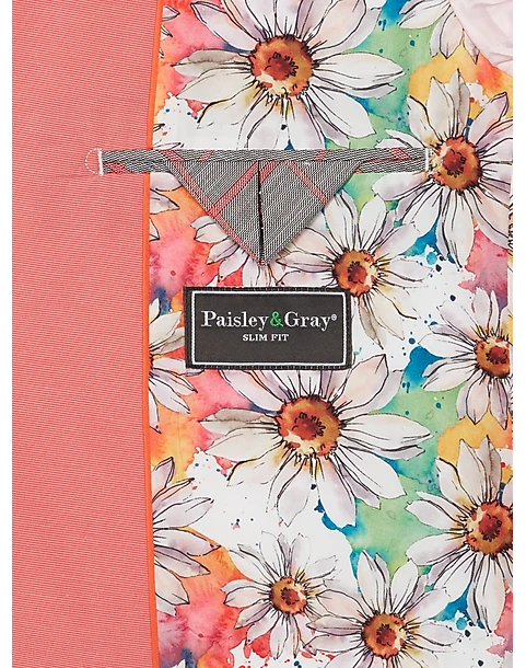 - 54% cotton 44% polyester 2% spandex|Notch lapel|Two-button closure|Matching pants sold separately|Slim Fit|Paisley & Gray|