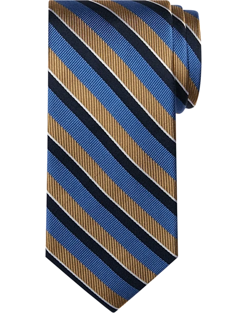 Stripes in retro-inspired hues bring a vintage vibe to this rich silk tie from Pronto Uomo.