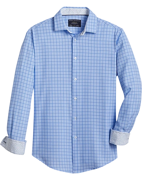 Report Collection Modern Fit Four-Way Stretch Sport Shirt, Medium Blue Check